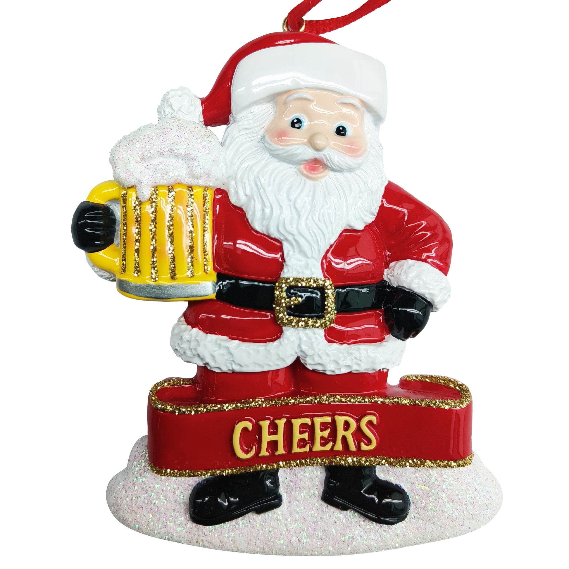 Crafted with high-quality resin, this figurine features vibrant handpainted details that highlight the textures of Santa's suit, beard, and the frothy beer mug. The base is lightly textured to resemble snow, enhancing the holiday spirit. The gold accents on the belt buckle and mug handle add a polished finish.